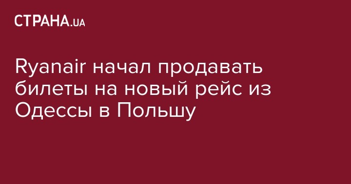 Ryanair начал продавать билеты на новый рейс из Одессы в Польшу