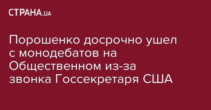 Порошенко досрочно ушел с монодебатов на Общественном из-за звонка Госсекретаря США