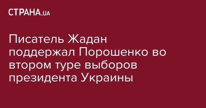 Украинский писатель, музыкант и общественный деятель Сергей Жадан выразил поддержку действующему главе государства Петру Порошенко во втором туре выборов президента Украины, который пройдет 21 апреля.