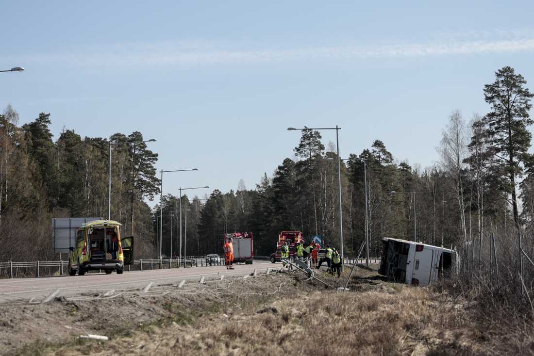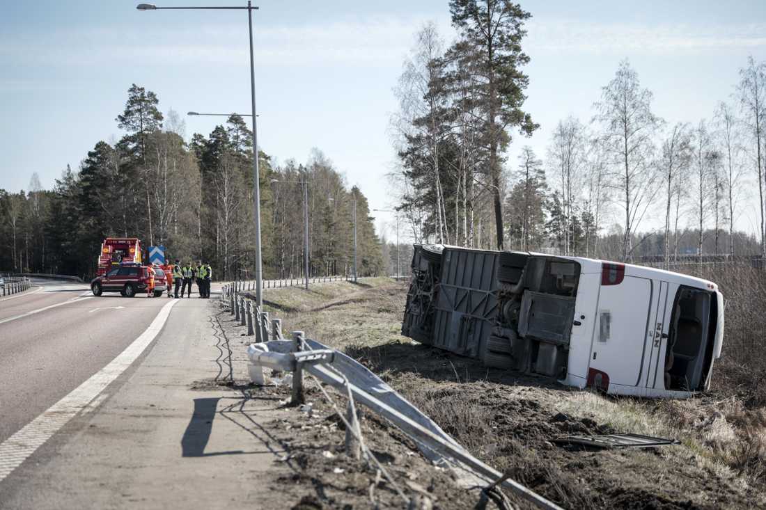 На момент аварии в автобусе было около 29 человек. Они ехали из Осло в Стокгольм. В какой-то момент автобус съехал с дороги в кювет и перевернулся. Причины аварии пока не сообщаются.