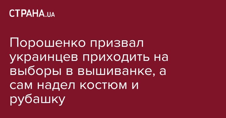 Порошенко призвал украинцев приходить на выборы в вышиванке, а сам надел костюм и рубашку