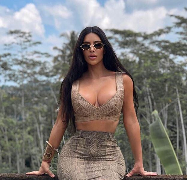 На фото звезда предстала в сексапильном приталенном топе и юбке. Трендовый наряд Ким Кардашьян со змеиным принтом подчеркнул ее пышный бюст и стройную талию.