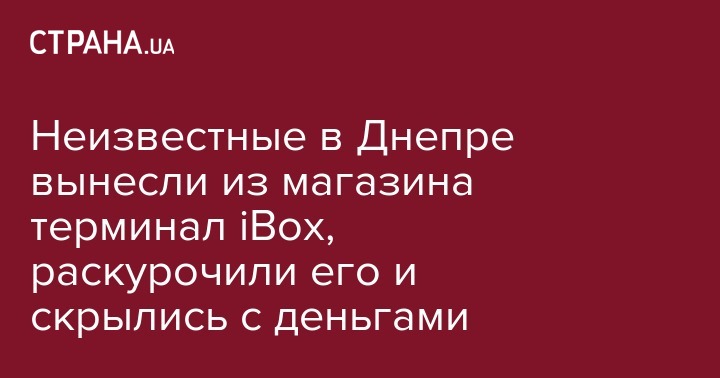 В Днепре в ночь на 23 апреля неизвестные похитили из продуктового магазина терминал iBox, раскурочили его и скрылись с извлеченными из него деньгами. Сам изуродованный терминал злоумышленники подкинули во двор одного из частных домов. Об этом сообщает "Информатор".