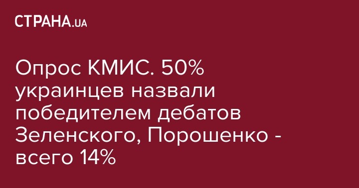 Опрос КМИС. 50% украинцев назвали победителем дебатов Зеленского, Порошенко - всего 14%