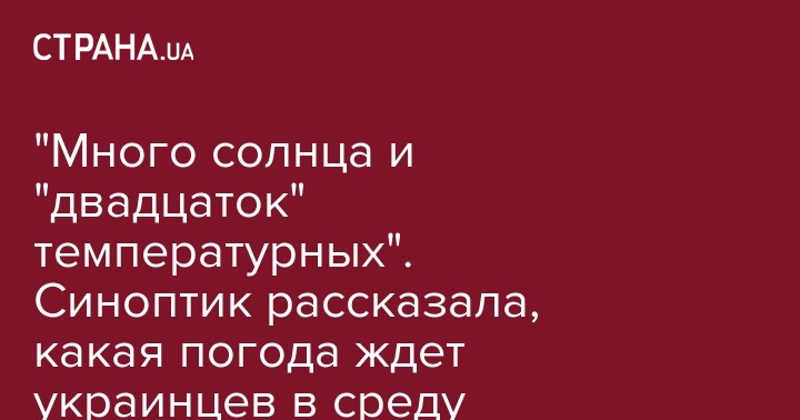 "Много солнца и "двадцаток" температурных". Синоптик рассказала, какая погода ждет украинцев в среду