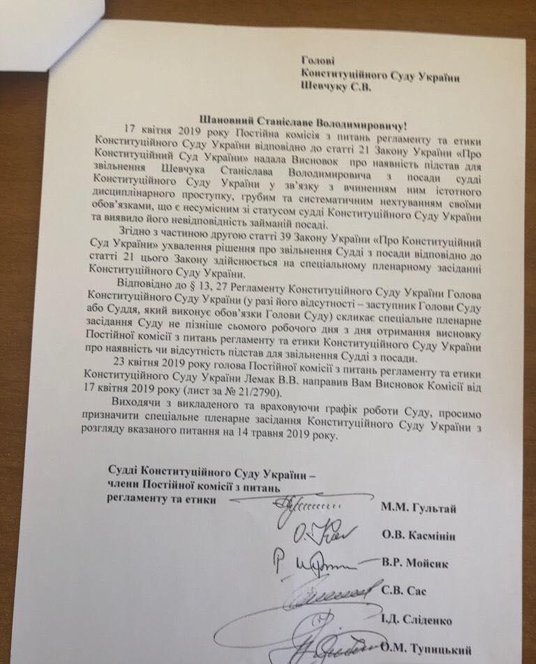 Вопрос об отставке главы Конституционного суда Станислава Шевчука, что может отсрочить инаугурацию Владимира Зеленского, переносится на 14 мая.