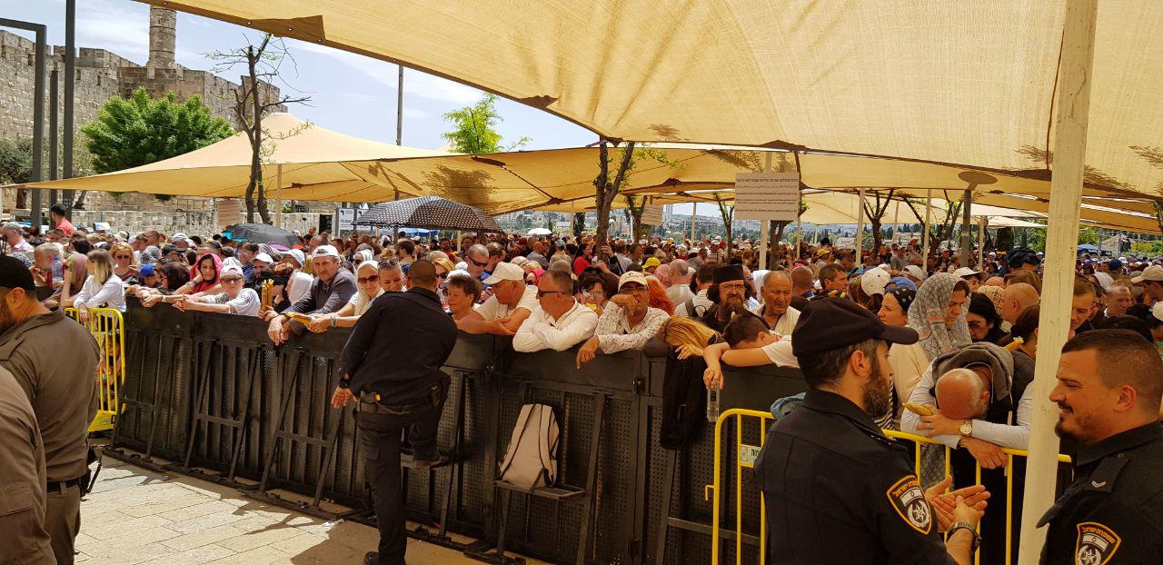 13:00  Перед Яффскими воротами собралось несколько тысяч верующих. Здесь центральный вход к Храму гроба Господня, но вход к нему полиция закрыла из-за огромного количества людей внутри храма и на близлежащей территории.