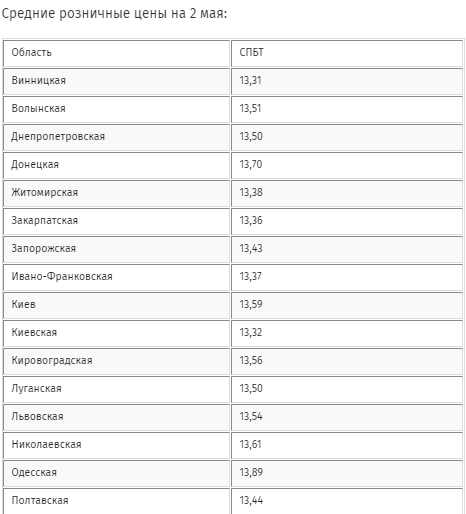 С начала 2019 года розничные цены на сжиженный газ СПБТ повысились на 1,43% с 13,31 гривен/литр.