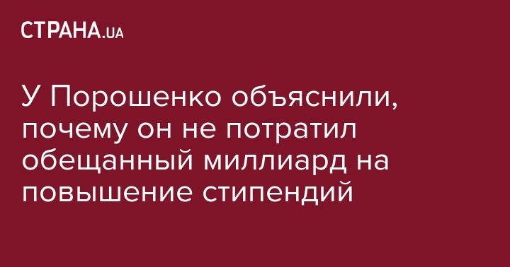 Напомним, 23 ноября 2018 года Петр Порошенко во время встречи со студентами Киевского национального торгово-экономического университета пообещал в 2019 году направить 1 млрд гривен из созданного "Фонда президента" на повышение стипендий для студентов и грантов для ученых.
