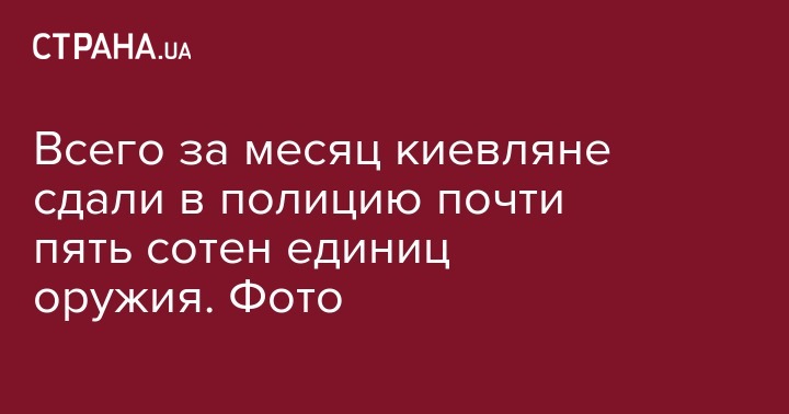 Отмечается, что с 1 апреля в органы киевской полиции населением добровольно сдано 480 единиц оружия. Из них 99 единиц нарезного оружия армейских образцов, 46 – нарезного охотничьего, 173 - гладкоствольного охотничьего, 53 - холодной, 77 - самодельного и тому подобное.
