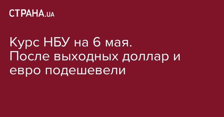 Официальный курс основных валют на 6 мая, установленный Нацбанком Украины:
