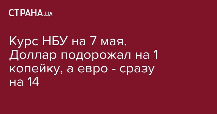 Официальный курс основных валют на 7 мая, установленный Нацбанком Украины: