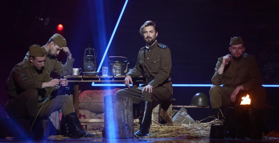 "Я исполню знаменитую песню военных лет "В землянке" (музыка Константина Листова, стихи Алексея Суркова - Прим.Ред.). Это одна из моих самых любимых композиций, поэтому я благодарен за возможность исполнить любовную лирику на военную тематику и старался максимально раскрыть тему. При подготовке мы долго писали вокал, искали особенные интонации. Я ведь не академический певец, поэтому первая блюзовая версия "В землянке" была забракована продюсером, пришлось все переписывать. В моем номере - оркестровая аранжировка. Обычно я много двигаюсь по сцене, но здесь было решено максимально пластику выразить во взгляде. Глазами рассказать историю. Результатом я очень доволен", - рассказал Андрей Кравчук.