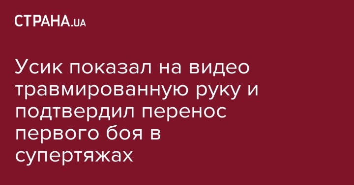 Боксер Александр Усик подтвердил, что его первый бой в супертяжелом дивизионе откладывается на неопределенный срок из-за травмы руки на тренировке. Об этом Усик сообщил в Facebook.