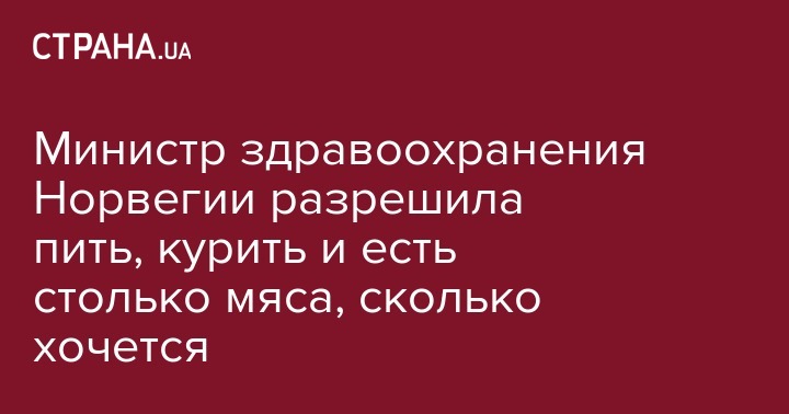 Министр здравоохранения Норвегии разрешила пить, курить и есть столько мяса, сколько хочется