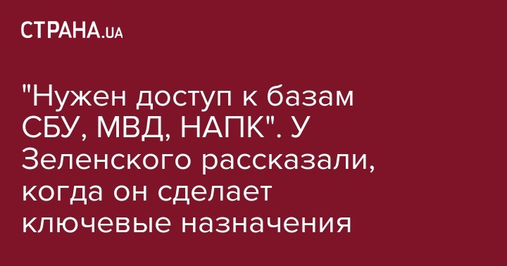 "Я так понимаю, что некоторые вакансии Владимир для себя уже закрыл, некоторые ищем. Но в любом случае решение будет, когда Зеленский уже будет в Администрации президента, когда у него будет доступ ко всем информационным ресурсам государства: базам СБУ, МВД, НАПК. Эти данные важно учитывать при кадровых назначениях", - отметил Андрей Богдан.