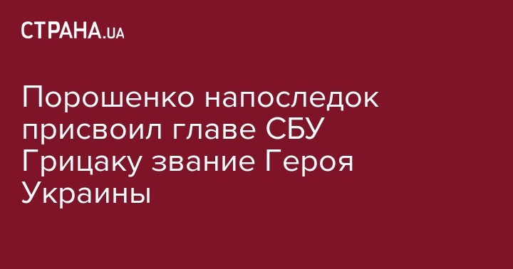 Присвоить звание Герой Украины с вручением ордена "Золотая Звезда" Грицаку Василию Сергеевичу - Председателю Службы безопасности Украины", - говорится в документе, подписанном Петром Порошенко.
