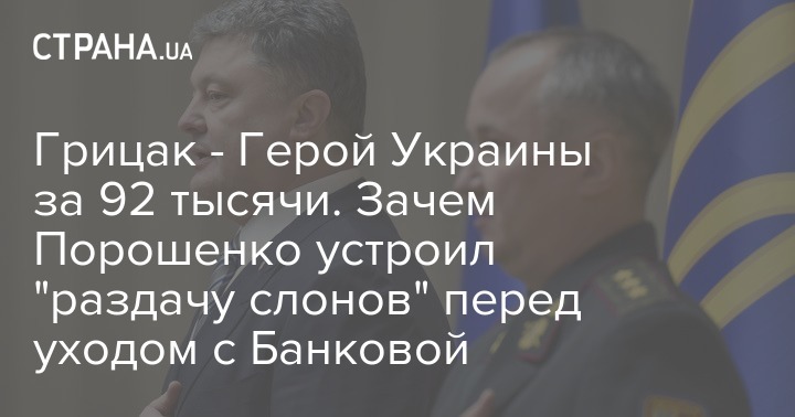 "Порошенко дал "Героя Украины" Грицаку, а до этого отметил наградами еще дюжину чиновников и все, конечно, сразу начали удивляться зачем президент массово раздает награды, ордена, звания и медали, дарит "Героев Украины" чиновникам, усматривают в этом позерство, советщину и странное поведение заканчивающего каденцию главы государства. Журналисты пишут, что на очереди Демчина получит звание генерал-полковника.