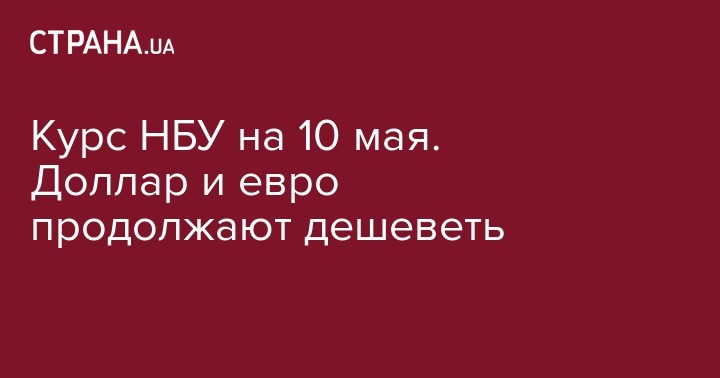 Курс НБУ на 10 мая. Доллар и евро продолжают дешеветь
