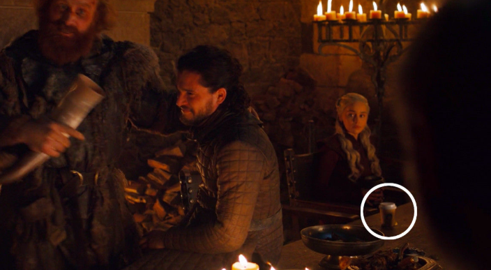 После выхода четвертой серии поклонники сериала обсуждали сразу несколько тем. Внимательные зрители заметили, как в четвертом эпизоде в кадре появился бумажный стаканчик с кофе. Он стоял на столе возле Матери драконов - Дейенерис Таргариен.