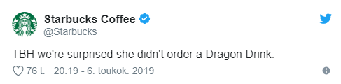Не упустили возможность сыграть на хайпе и в Starbucks. В компании также пошутили, что удивлены выбором Дейнерис, ведь ей стоило заказать "Драконий Напиток".