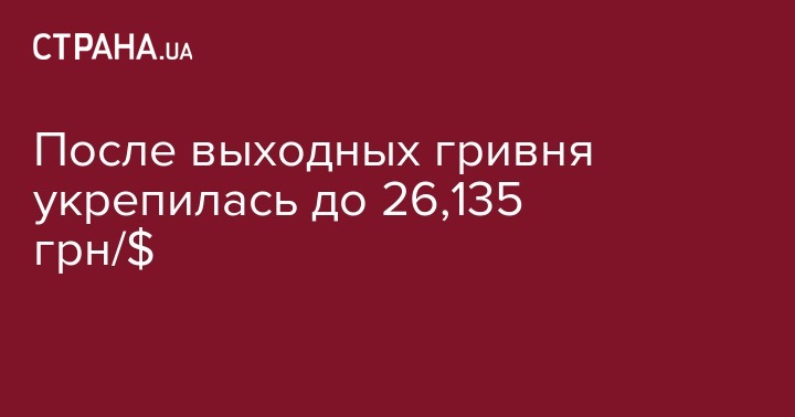 Отмечается, что котировки гривни к концу торгов составили 26,12-26,15 грн/$1.