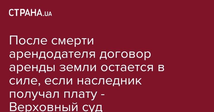 После смерти арендодателя договор аренды земли остается в силе, если наследник получал плату - Верховный суд