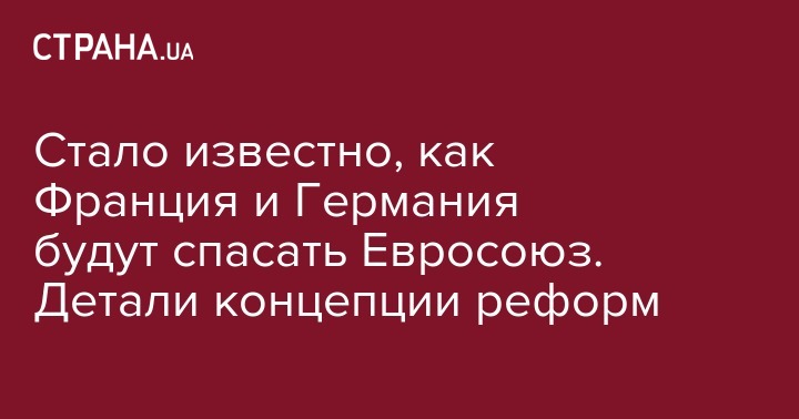 Как ранее писала "Страна", проект единого европейского государства, в котором предусмотрена глубокая интеграция, намерены презентовать Франция и Германия .