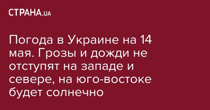 В западных областях синоптики обещают дожди и грозы. Днем +14...+20 градусов, ночью +8...+11 градусов. В центральных и северных областях, включая Киев, будет еще теплее. Днем до +23 градусов, ночью до +13 градусов. Впрочем, это не спасет данные регионы от грозовых дождей.