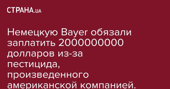 Немецкую Bayer обязали заплатить 2000000000 долларов из-за пестицида, произведенного американской компанией. Подробности