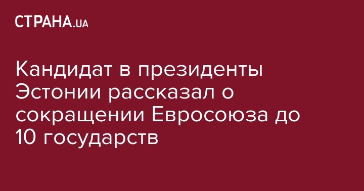 Кандидат в президенты Эстонии рассказал о сокращении Евросоюза до 10 государств