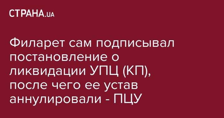 Как писала "Страна", в этом месяце Филарет заявил, что УПЦ-КП до сих пор существует, так как остается зарегистрированной в государственных органах, а Киевскую епархию возглавляет он в патриаршем чине. "УПЦ Киевского Патриархата остается зарегистрированной в государственных органах. В частности, зарегистрирована Киевская патриархия. Это означает, что юридически Киевский Патриархат продолжает существовать", - сказал он.