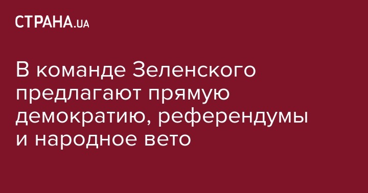 В команде новоизбранного президента Украины Владимира Зеленского предлагают внедрить в Украине систему народовластия по принципу "прямой демократии", которая будет включать в себя справедливые и качественные референдумы, обязательное реагирование на народные инициативы и "народное вето" на принимаемые ключевыми органами власти решения.