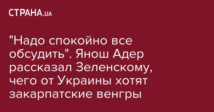 Янош Адер предложил украинскому президенту как можно быстрее создать совместную комиссию, участники которой "в спокойной обстановке смогут обсуждать все спорные вопросы и их решения".