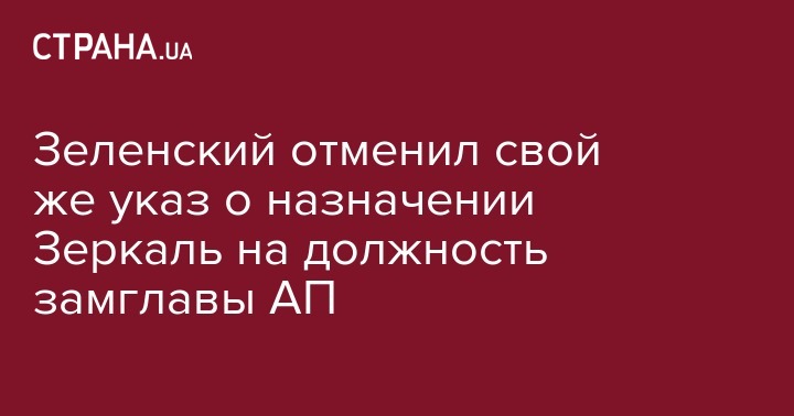 Напомним, что накануне на сайте президента появился указ о назначении Елены Зеркаль на должность замглавы Администрации президента. Однако, как выяснилось позже, она не приняла предложение президента занять этот пост и указ о назначении с сайта убрали.