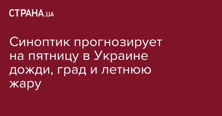 Синоптик прогнозирует на пятницу в Украине дожди, град и летнюю жару