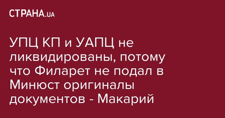 УПЦ КП и УАПЦ не ликвидированы, потому что Филарет не подал в Минюст оригиналы документов - Макарий
