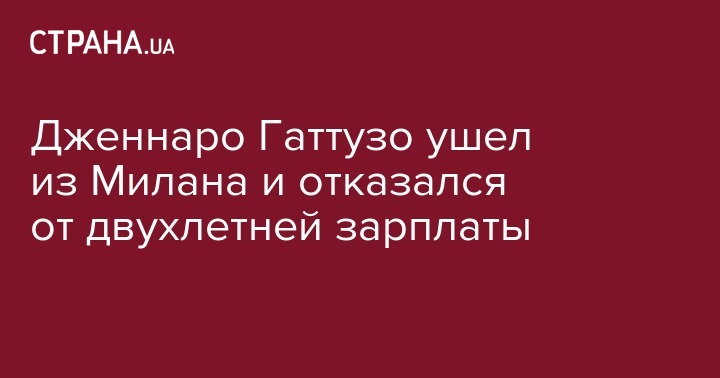 Главный тренер Милана, легенда клуба, Дженнаро Гаттузо заявил о своем уходе из команды. Он также сообщил, что отказался от двух лет контракта, прередает La Repubblica.