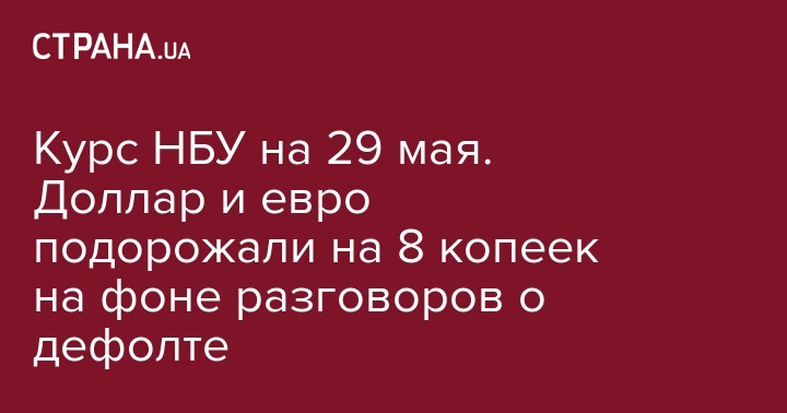 Курс НБУ на 29 мая. Доллар и евро подорожали на 8 копеек на фоне разговоров о дефолте