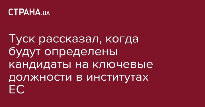 Кандидаты на ключевые должности в главных европейских институтах власти будут определены в течение месяца. Об этом со ссылкой на президента Европейского совета Дональда Туска пишет "Европейская правда".