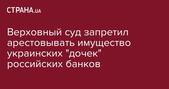 Верховный суд Украины отказался арестовывать имущество "дочек" российских банков - Сбербанка, ВТБ Банка и Проминвестбанка. Об этом пишет "Интерфакс-Украина"