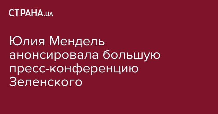 Президент Украины Владимир Зеленский может провести первую большую пресс-конференцию по истечению 100 дней президентства в конце лета. Об этом сообщила его пресс-секретарь Юлия Мендель во время сегодняшнего  брифинга для СМИ