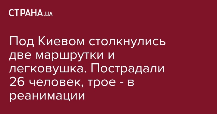26 человек получили травмы различной степени тяжести в результате ДТП с участием двух маршруток и легковушки, которое произошло во вторник, 4 июня, в городе Боярка Киевской области. Об этом сообщается на сайте Нацполиции Киевщины.