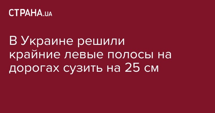 "Сужение ширины полос движения на дорогах - очень удачная практика для повышения безопасности, которая работает во многих странах Европы и мира. Поэтому мы решили ввести ее во время нового строительства крупнейших и самых интенсивных украинских трасс при устройстве левых скоростных полос", - говорится в сообщении.