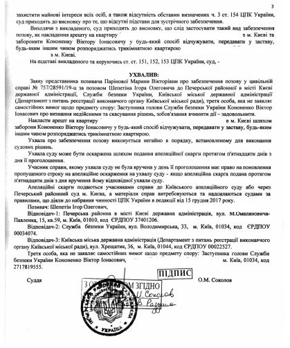 "Коллеги, информирую, что сегодня, в рамках учебно-воспитательных мероприятий по углублению демократии, по нашему иску суд арестовал имущество одного из самых ближайших соратников Порошенко - заместителя Главы СБУ Кононенко. Того самого, который выполнял грязные задачи Порошенко и Грицака, а потом получил от государства и присвоил себе дорогую квартиру в элитном комплексе центре Киева", - отметил Портнов.