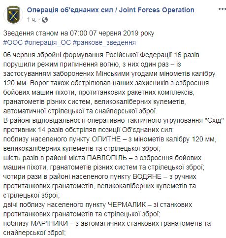 Напомним, что вчера на Донбассе по ВСУ 12 раз открывали огонь, убит один военнослужащий.