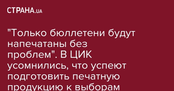 Однако, по данным председателя ЦИК Евгения Радченко, без проблем могут быть напечатаны только избирательные бюллетени, а относительно другой печатной продукции могут возникнуть проблемы.