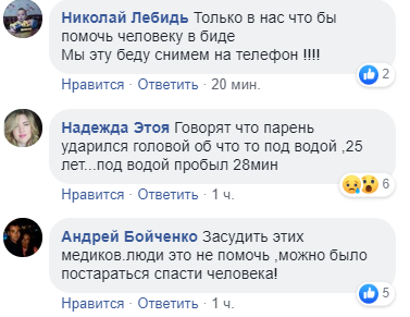 Очевидцы с места события пишут в комментариях, что "парень ударился головой о что-то под водой, ему было 25 лет... он под водой пробыл 28 минут", - отметила Надежда Этоя.