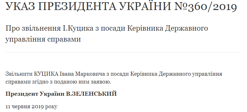 Соответствующие указы президента Украины №360/2019 и №362/2019 от 11 июня 2019 года обнародованы на сайте главы Украинского государства во вторник.