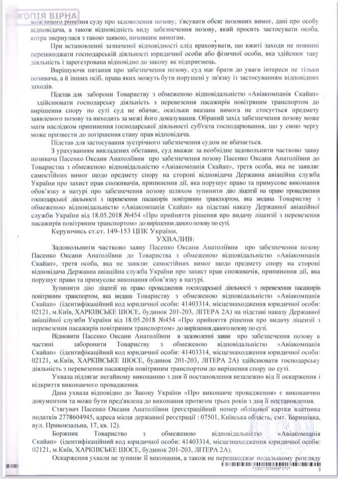 "Суд данной инстанции не имел права принимать решение о приостановлении действия лицензии на право осуществления хозяйственной деятельности по перевозке пассажиров воздушным транспортом, поскольку регуляторами в сфере авиаперевозок является Министерство инфраструктуры Украины и Госавиаслужба Украины. Исходя из вышесказанного, данное Постановление никак не влияет на хозяйственную деятельность компании, а является лишь следствием недобросовестной конкуренции", - говорится в сообщении пресс-службы.